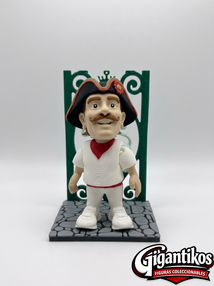 Nuestras figuras no son solo reproducciones; son un homenaje a la tradición. Cada pieza combina la icónica cabeza de tus personajes favoritos con la vestimenta clásica de San Fermín