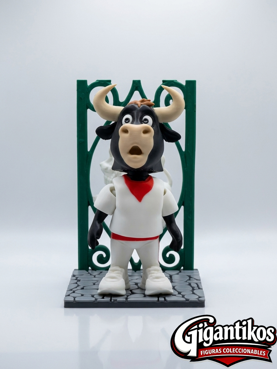 GIGANTIKOS figura inspirada en Toro encierro San Fermín con vestimenta Pamplonica